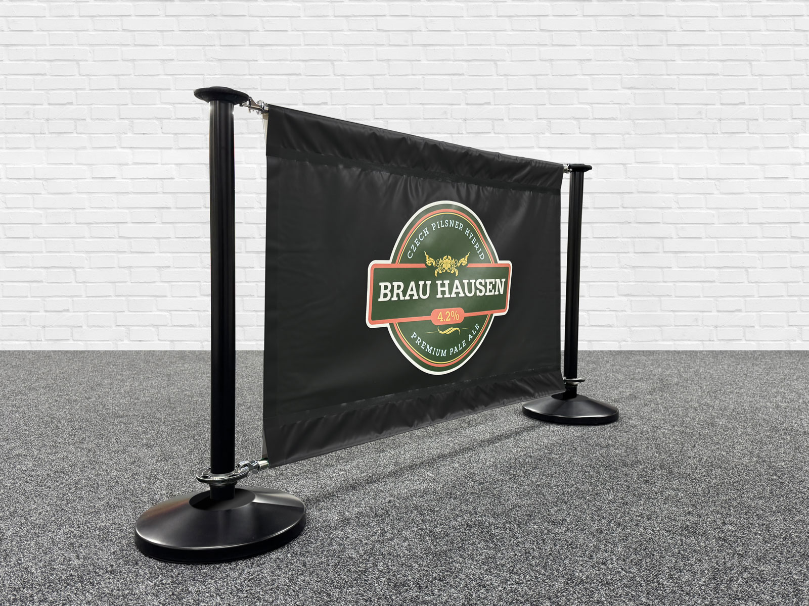 The Premium Black Bundle is a higher-end Cafe Barrier product.  It features black powder-coated posts and bases weighing in at 14.5kg, with  top and bottom rails to secure your banners. Suitable for indoor or outdoor use.