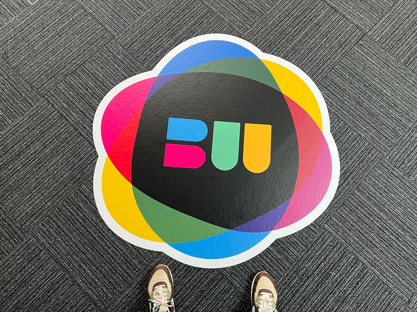 Carpet stickers are versatile since they may be printed in any form or size. They may be quickly and simply fitted on short-pile carpet tiles or event carpet. Our strong high-tack adhesive bonds the sticker to your short-pile carpet, and our anti-slip laminate coating prevents potential slips and trips.