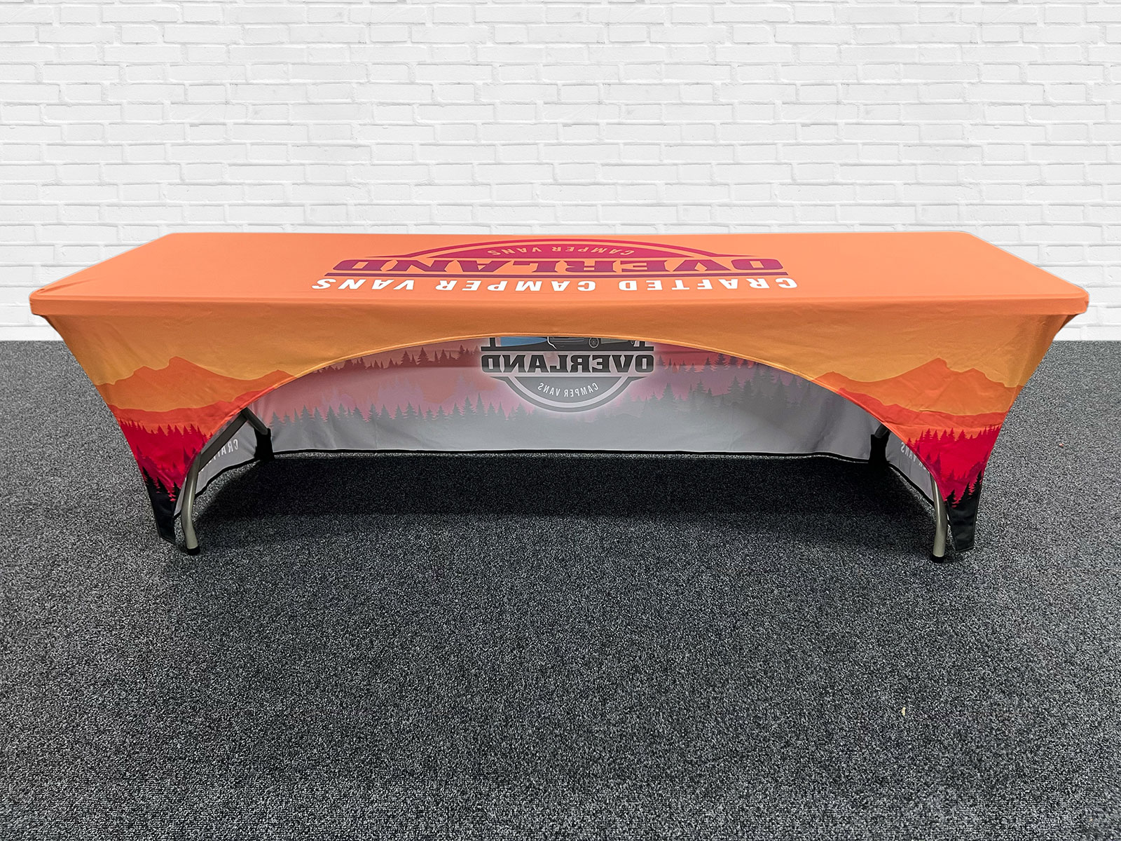 Customise your tablecloth directly on our website, BannerWorld.co.uk. Create a stunning design and let us handle the rest. Your personalised stretch tablecloth will be printed with precision and delivered ready to use for your next event.