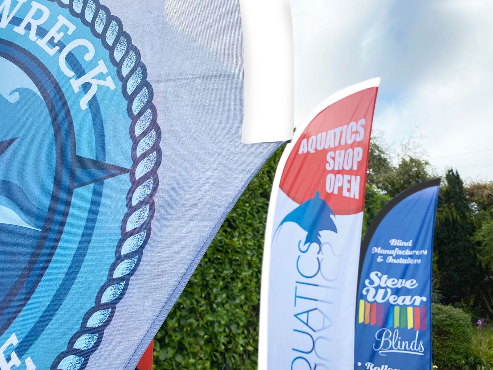 We print our flags in full colour, meaning you can have any design you require. Read more about Feather Flags here…