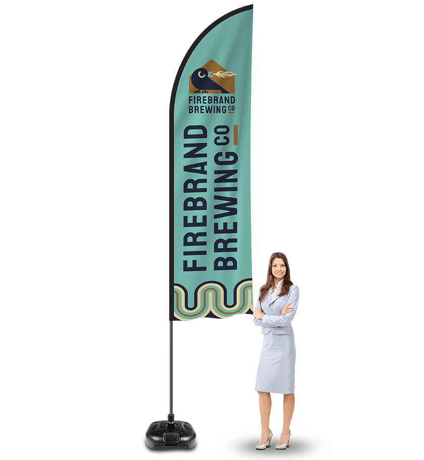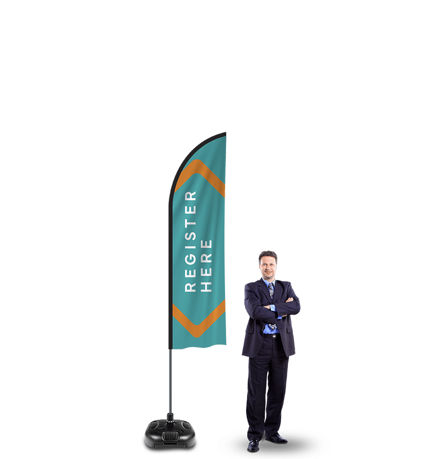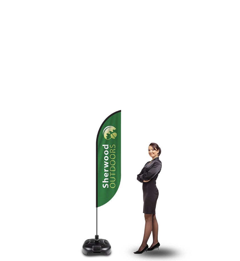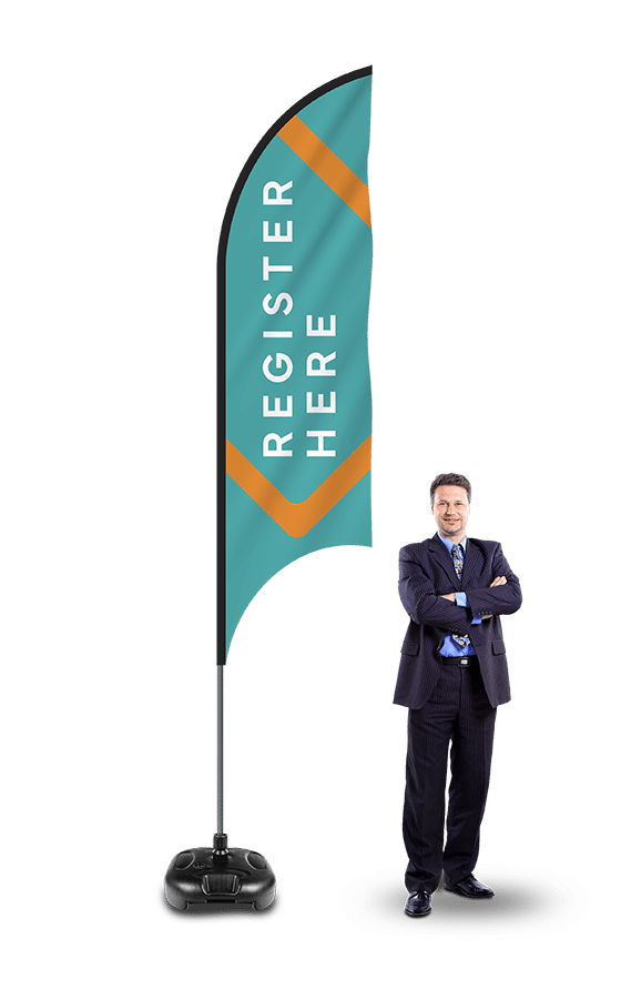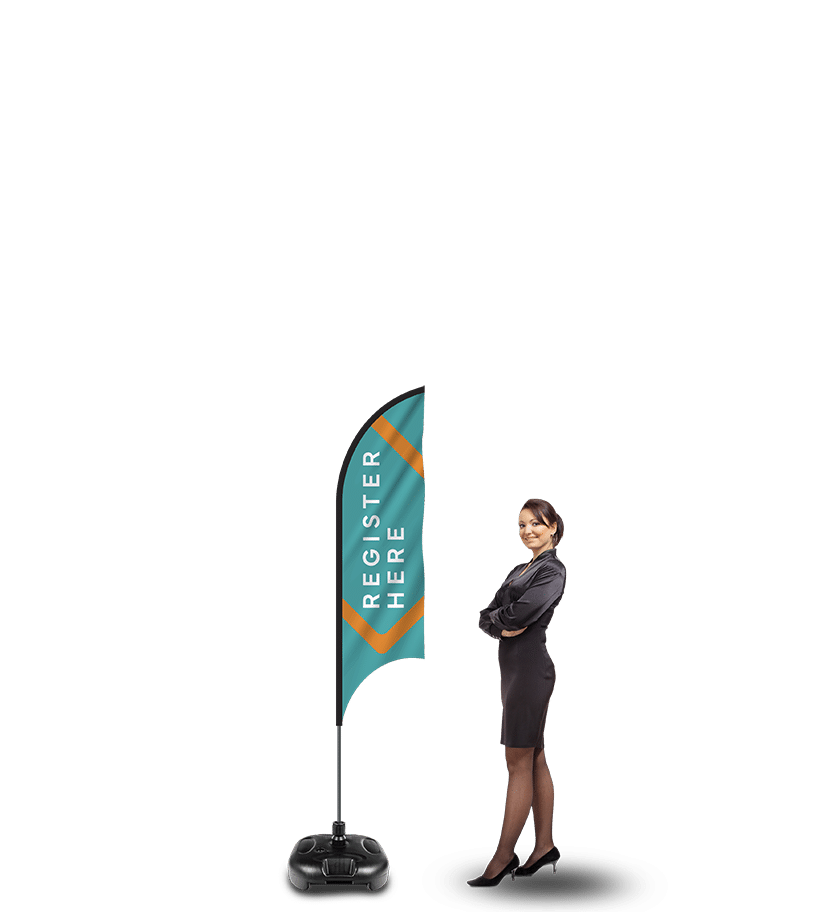Our Feather Flags don’t require a standard flagpole. They come complete with a flexible Flag Feather pole and your choice of sturdy base. Feather Flags are a great marketing strategy for any business.