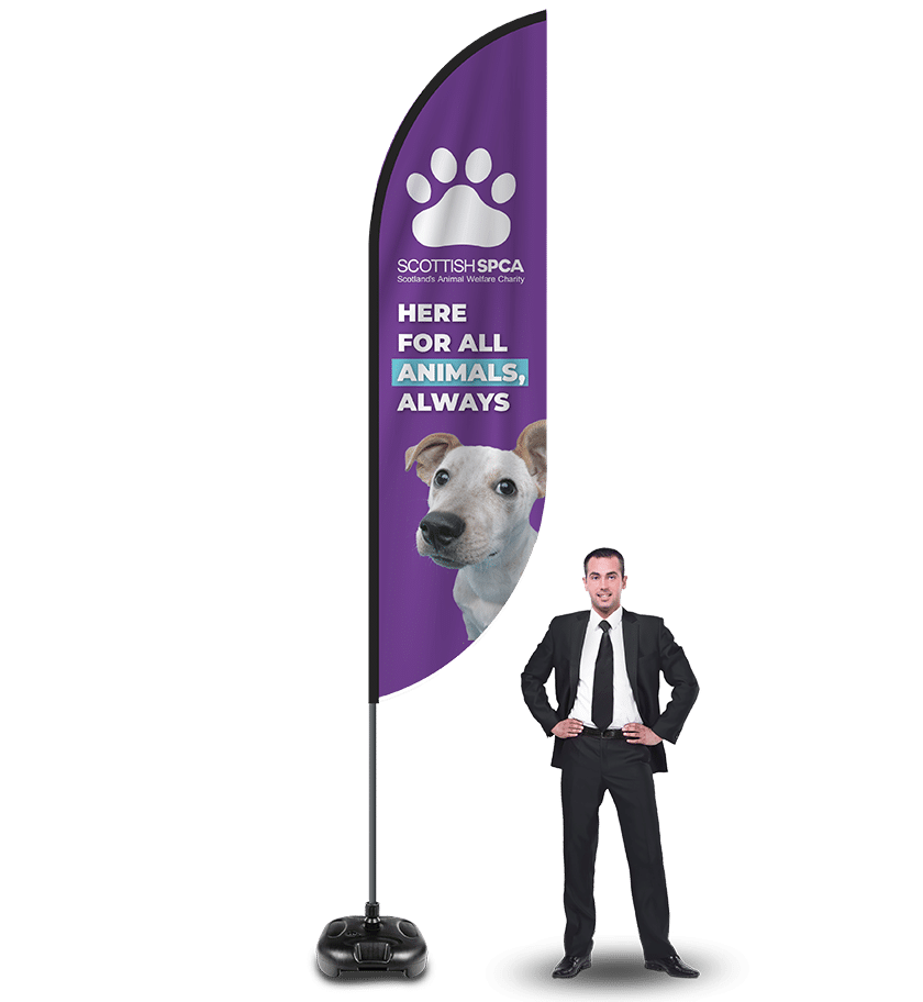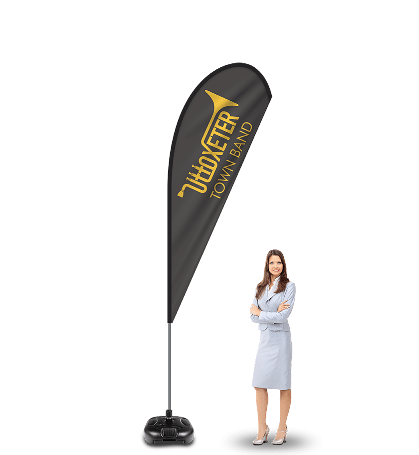 We make large feather flags that stand up to 5m tall or nearly 17 feet in height. We offer Giant feather flags and large teardrop flags. Large feather flags are an excellent way to grab the attention of your target audience and promote your business or company. With their eye-catching designs and bold colours, feather flags are a powerful marketing tool and increase revenue by increasing your brands presence. Whether you’re a small business or a large company, feather flags can help you stand out from the competition and get the attention you deserve.
