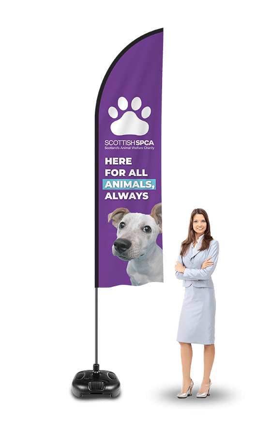Banner World is the UK’s leading supplier of printed feather flags, offering sail flags in full-colour designs using dye-sublimation printing for deep, vibrant colours. Our feather banner flags are available in a variety of shapes, styles, and sizes to meet your needs, whether single-sided with a mirror-image reverse or double-sided with a block-out liner for clear designs on both sides.