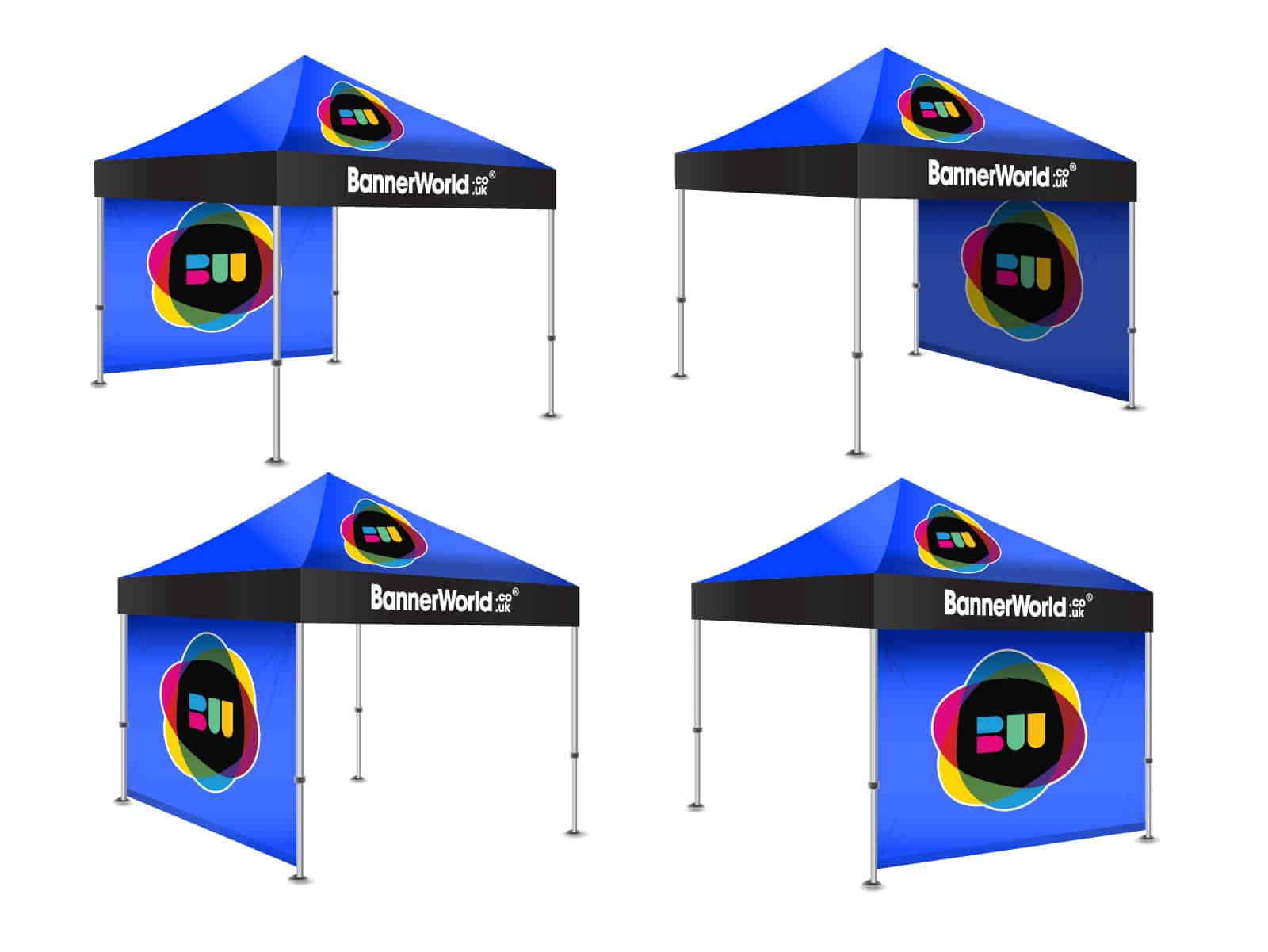 Our branded gazebos are the perfect solution for professional branding at any event, trade show or festival. Using the latest class-leading aluminium frames and fabrics, you can be sure that you are buying the best value Gazebo on the market. While other competitors offer lower quality items, we only use the best fabrics and gazebo frames which means we offer the best value for money on top quality printed gazebos.