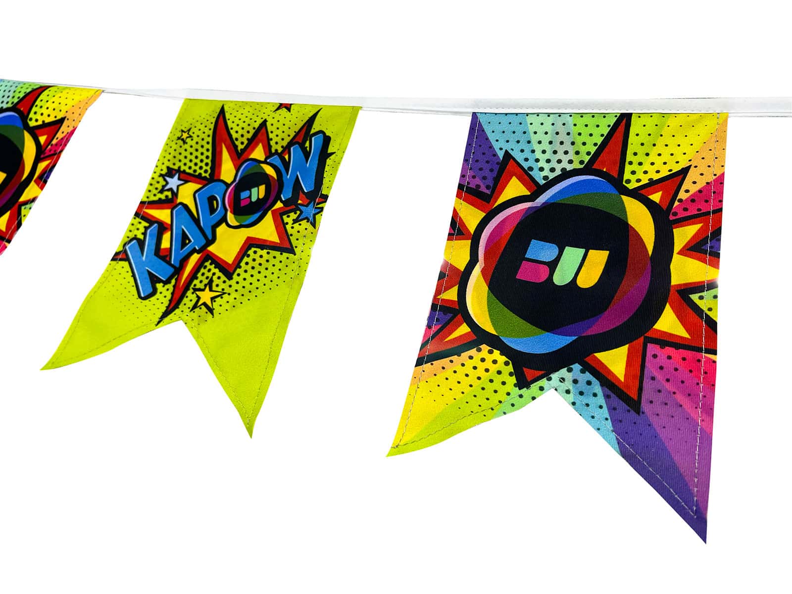 Our Custom Bunting is a symbol of premium quality. Printed onto high-grade polyester fabric using the innovative dye-sublimation printing method, the colours are vibrant, long-lasting and true-to-design.